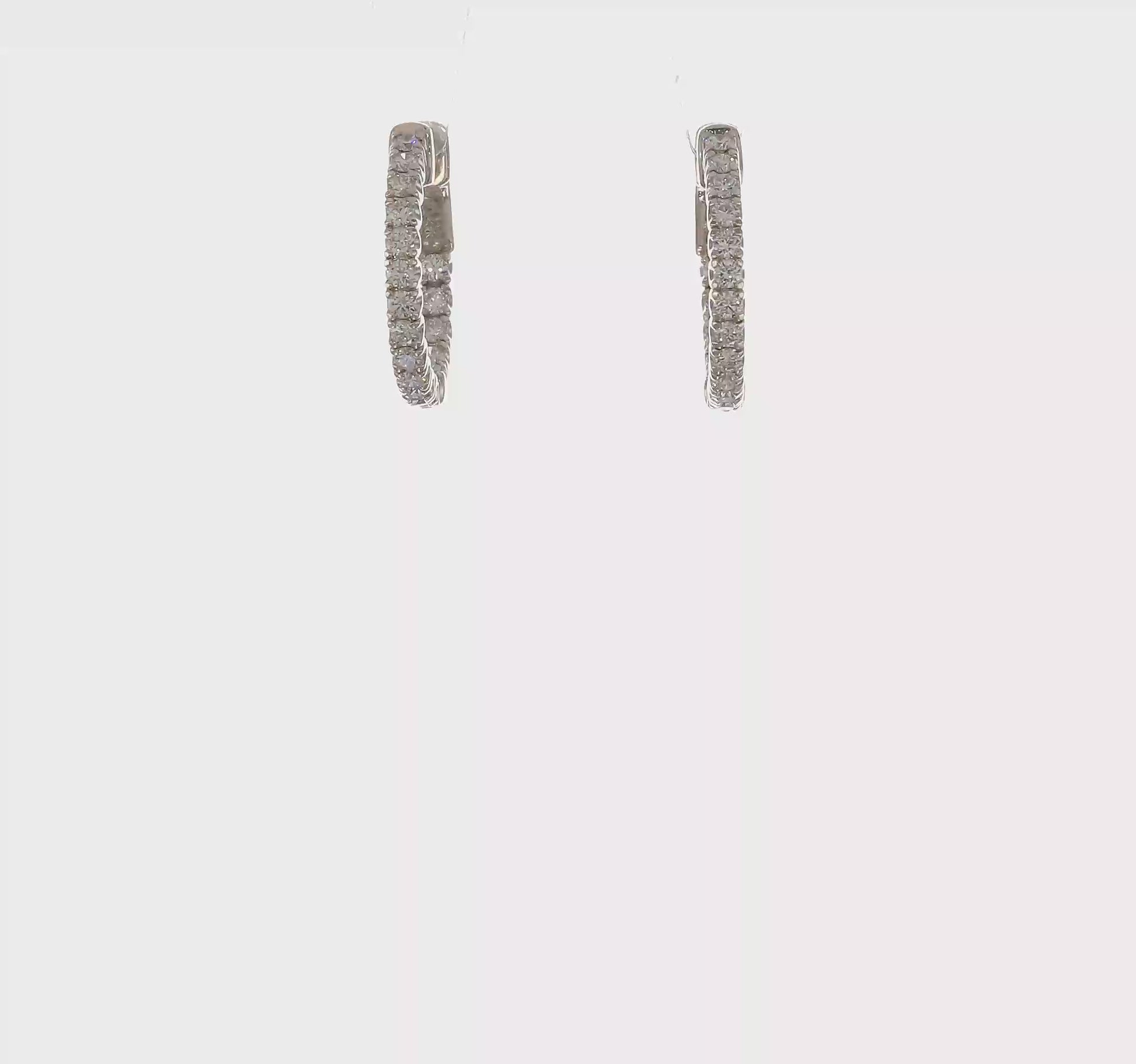 These 14k White Gold Hoop Earrings are a stunning example of true elegance and classic beauty! Made with the finest quality materials and craftsmanship, these earrings feature a safety clasp that ensures they will stay securely and comfortably on your earlobes. The round diamond design adds a touch of shimmer and sparkle, making these earrings perfect for any occasion. With a length and width of 20 mm, they are the perfect size to accentuate your natural beauty. These earrings are sold as a pair and are made in the United States with pride and precision. Make a statement and add a touch of luxury to your jewelry collection with these 1 Ct Round Diamond Hoop Earrings with Safety Clasp in 14k Gold. 5.51 Grams
