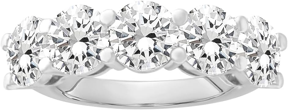 Elevate your love with our 14k Gold Round Lab Grown Diamond 5-Stone Anniversary Ring. Crafted from high-quality 14K white gold, this ring features 3 carats of sparkling lab grown diamonds in a classic round shape. With VS clarity and D-E color, this ring is a symbol of eternal love and beauty. 4.03 Grams