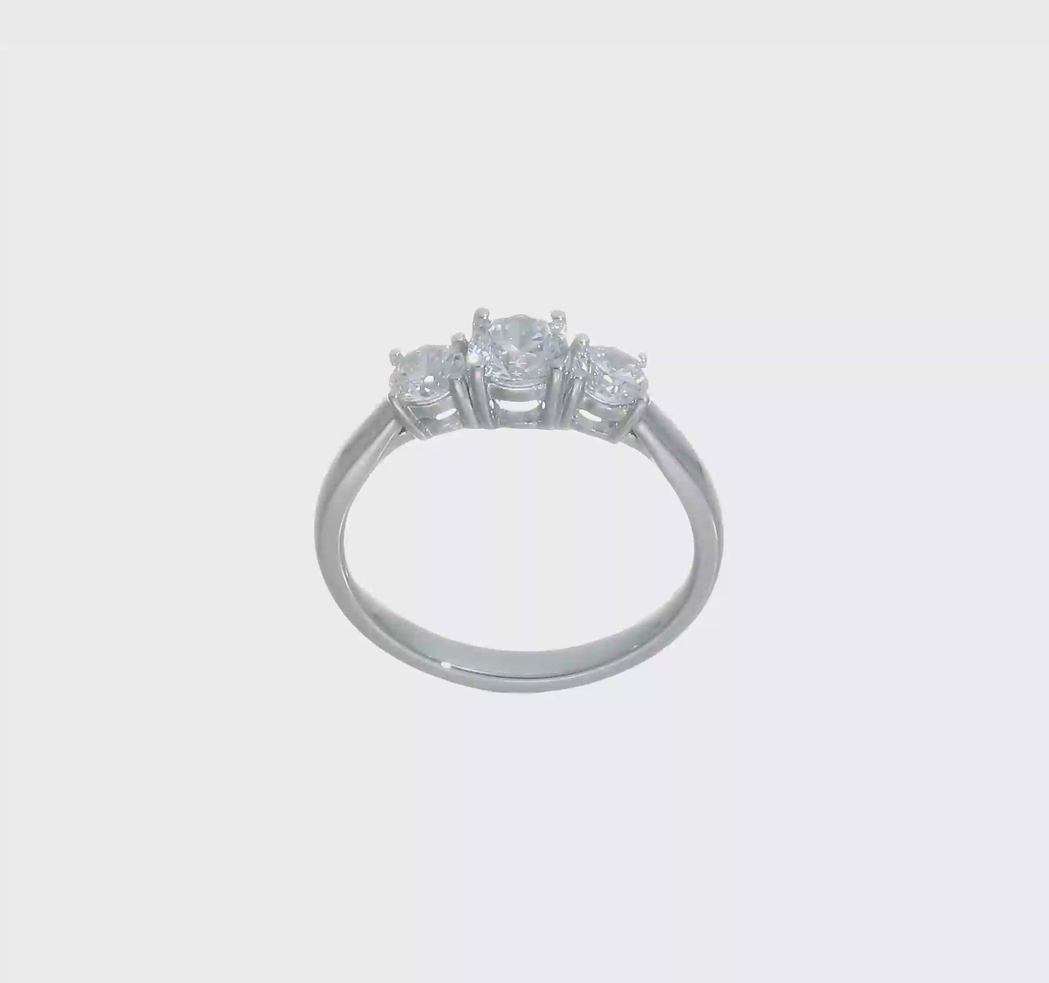 Indulge in luxury with our 14k White Gold 1 Ct Lab Grown Diamond 3-Stone Engagement Ring VS, F. Made with the finest materials, including a gleaming 14k white gold band and a dazzling 1 carat lab grown diamond, this ring exudes exclusivity and elegance. Crafted in a sophisticated style with a rounded edge, this ring is complete with a polished finish and a striking 13.25 mm ring top width for an exquisite touch. Make a statement with this stunning piece, perfect for any special occasion. 3.85 Grams