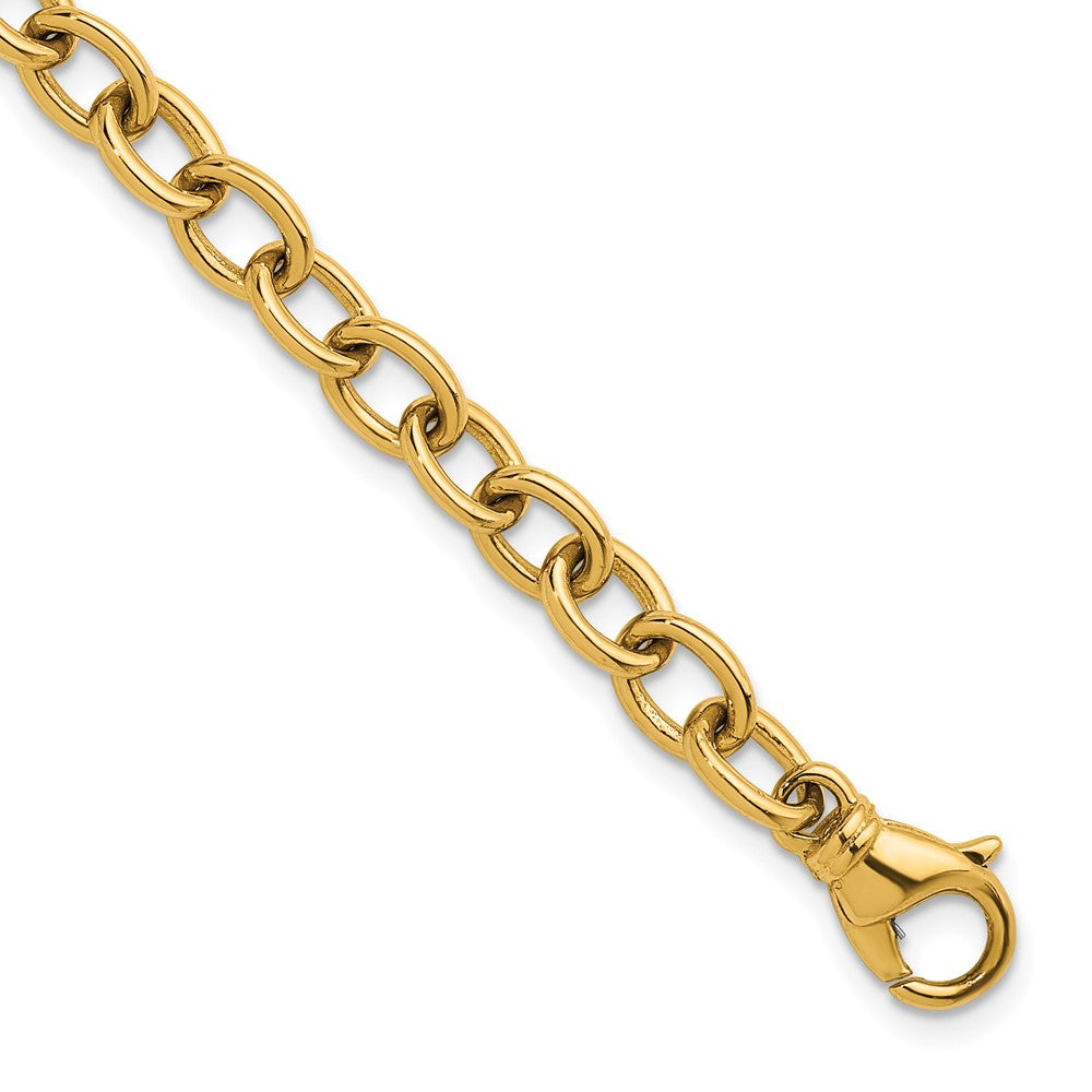 Expertly crafted, this 14K Yellow Gold Oval Link Chain Bracelet boasts a polished finish and solid construction for durability. At 6.5mm wide and 7.5 inches long, it is the perfect accessory for any occasion. Elevate your style with this elegant and timeless piece.