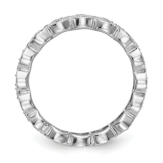 Experience the luxurious and timeless beauty of our 3-row 1/2 Ct Round Cut Diamond Eternity Band Ring. Made with 14k Gold, each polished piece shines with stunning brilliance. Adorned with 48 sparkling diamonds, totaling 0.01 ct, this solid ring is complete with all stones included. The band features a classic round shape and is plated with rhodium for a sleek white finish. This is the perfect addition to any jewelry collection, offering sophistication and elegance. Available in various sizes, this ring is sold individually and is unable to be resized. Order yours today and treat yourself to a piece of exquisite jewelry that will be treasured for years to come.