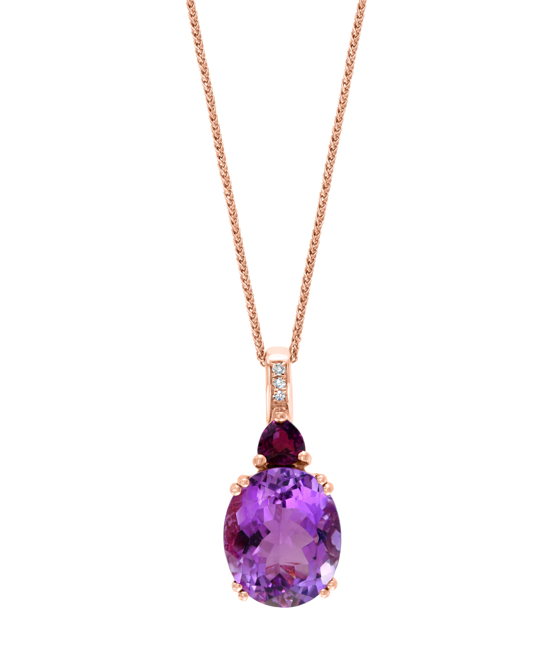 PRODUCT DETAILS: 14k Rose Gold 4.69ct Oval Cut Amethyst and Pendant Necklace 18", Stone Type- Amethyst, Total Carat Weight- 4.69cttw