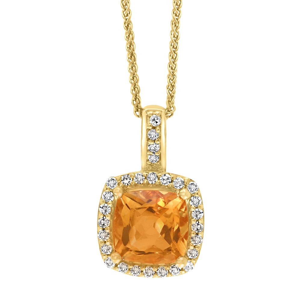 PRODUCT DETAILS: 14k Yellow Gold 0.9ct Cushion Citrine and Diamond Pendant Necklace 18", Stone Type- Citrine, Total Carat Weight- 0.9cttw
