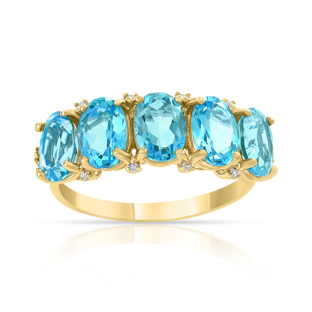 PRODUCT DETAILS: 14k Yellow Gold 3.84ct Oval Blue Topaz and Diamond Wedding Band Ring, Stone Type- Blue Topaz, Total Carat Weight- 3.84cttw